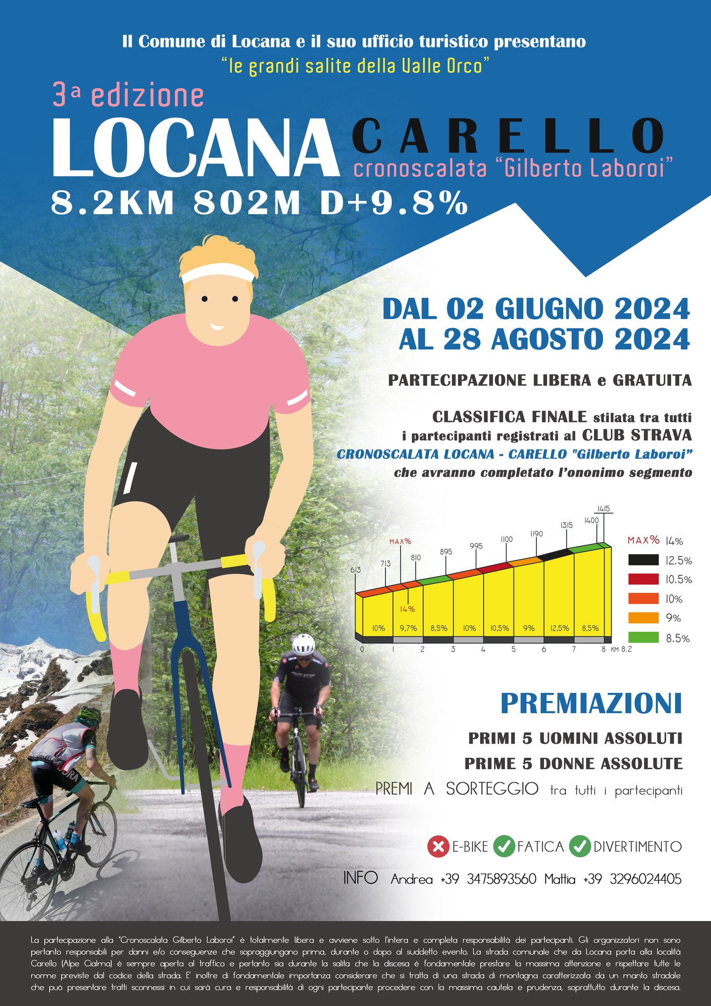 Classifica stilata tra tutti i registrati al suddetto CLUB STRAVA che avranno completato il segmento strava anch'esso denominato CRONOSCALATA LOCANA - CARELLO "Gilberto Laboroi".