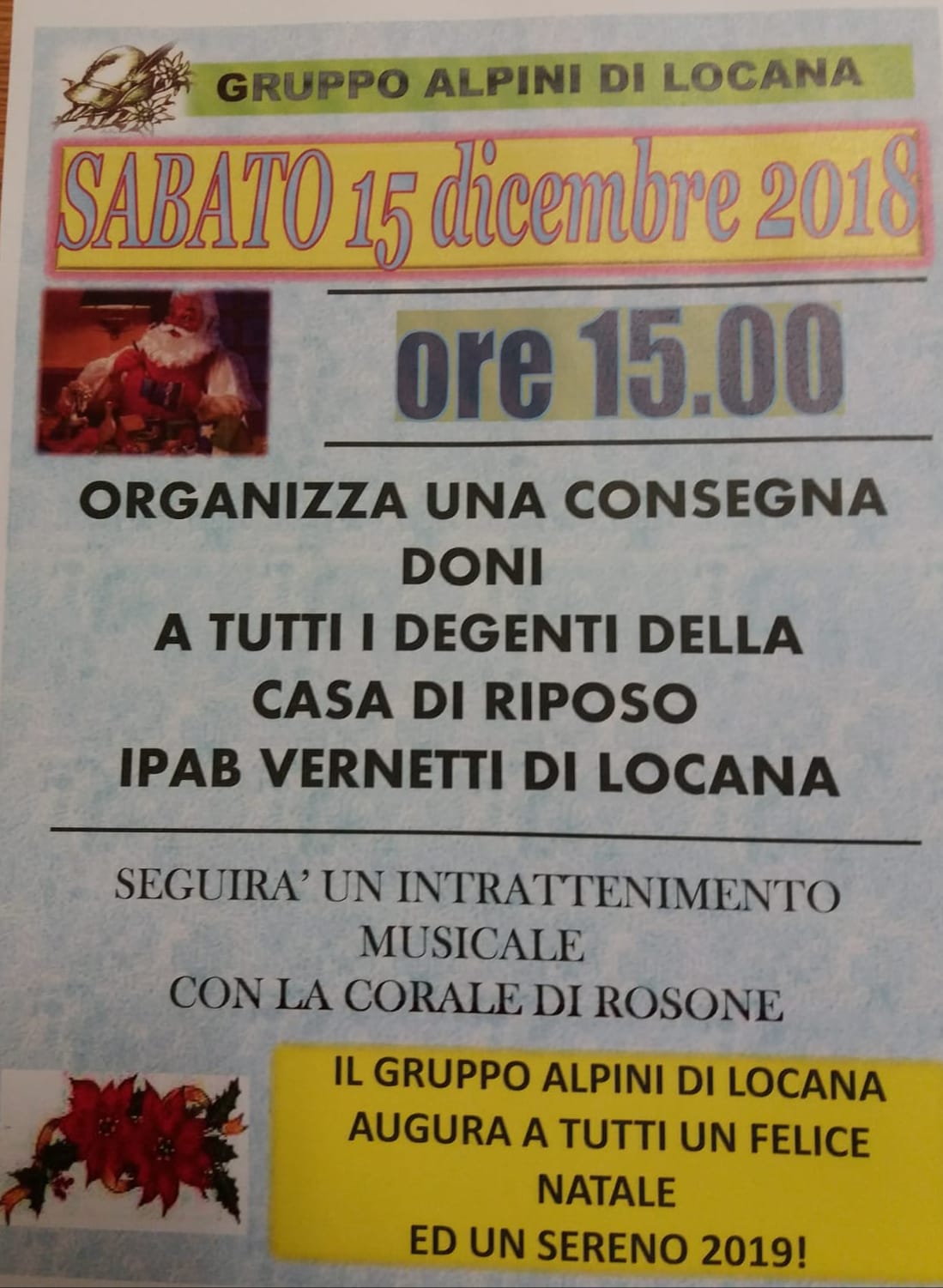 Il Gruppo Alpini di Locana organizza una consegna doni a tutti i degenti della casa di riposo IPAB Vernetti di Locana.