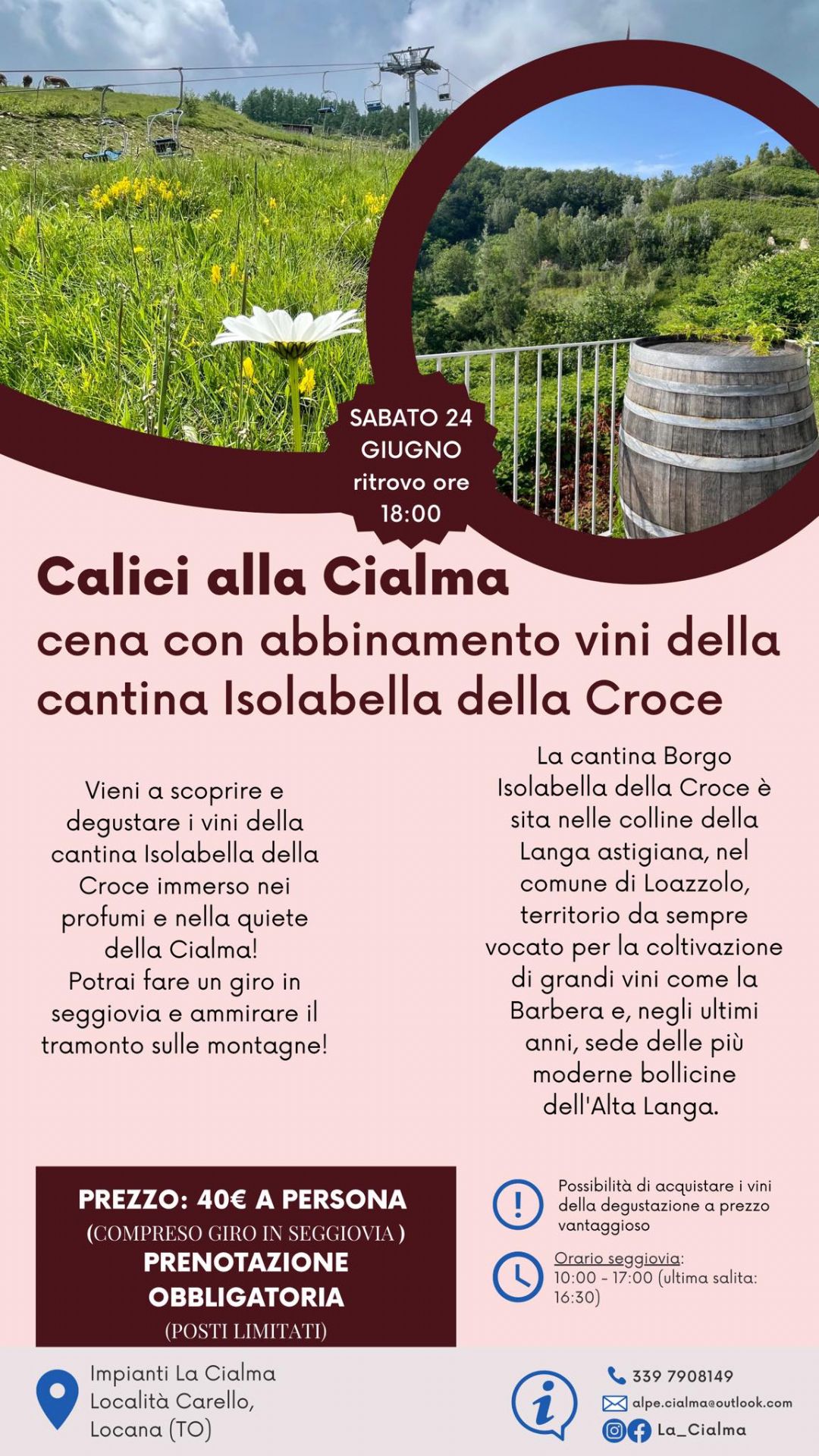 Vieni alla Cialma a scoprire i vini della cantina Isolabella della Croce con cena in abbinamento!