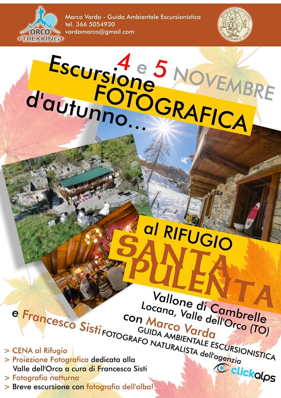 Eccezionale evento autunnale al Rifugio Alpino Santa Pulenta il 4 e 5 novembre 2017!