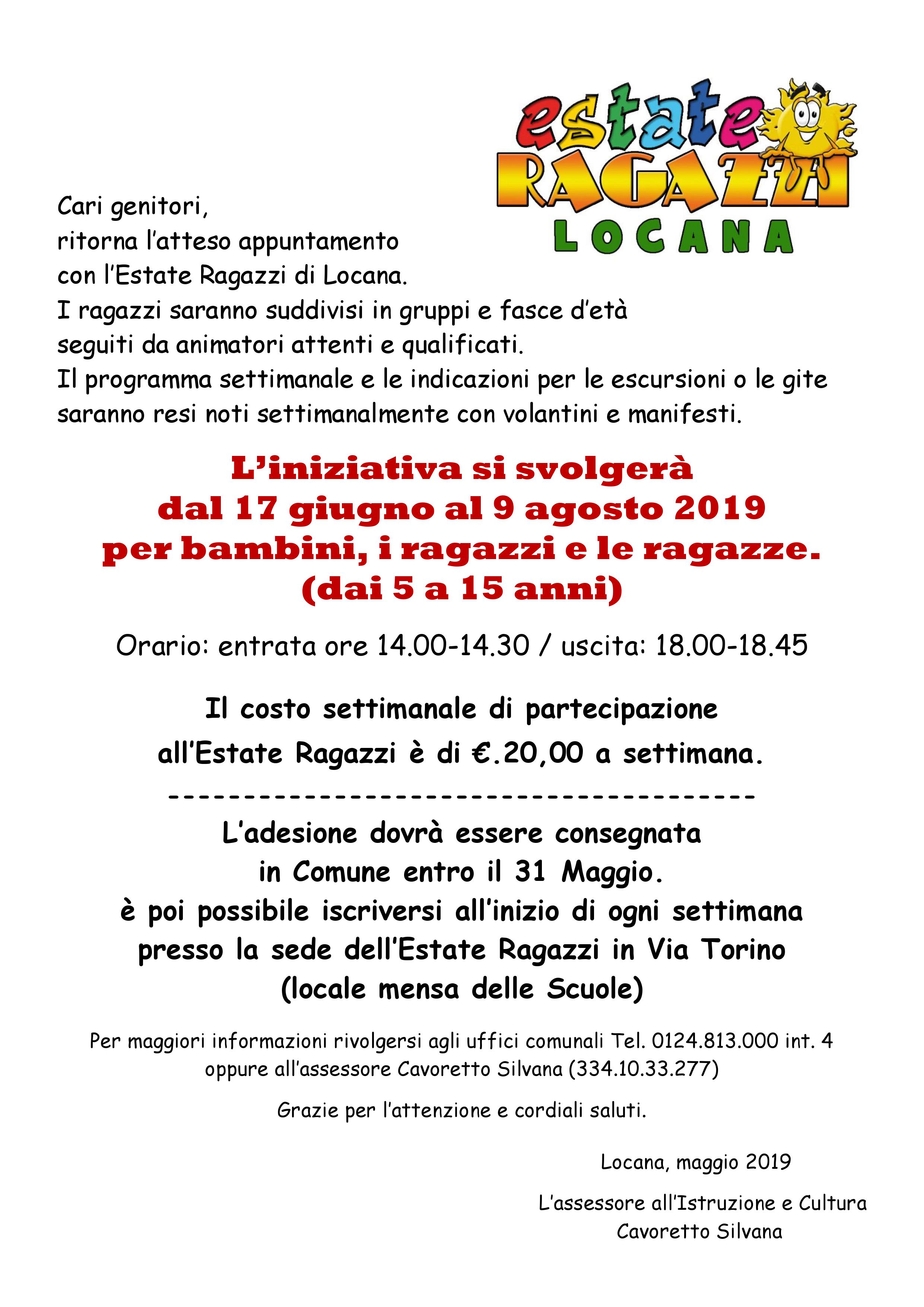 E' poi possibile iscriversi all’inizio di ogni settimana presso la sede dell’Estate Ragazzi in Via Torino (locale mensa delle Scuole).