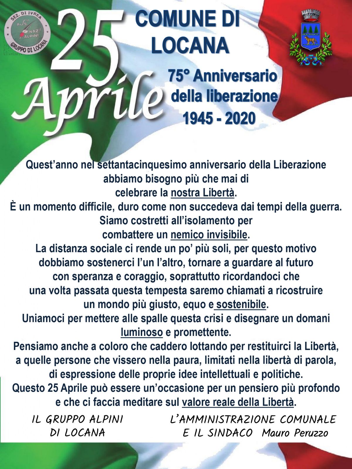 75° Anniversario della Liberazione - 25 Aprile 2020