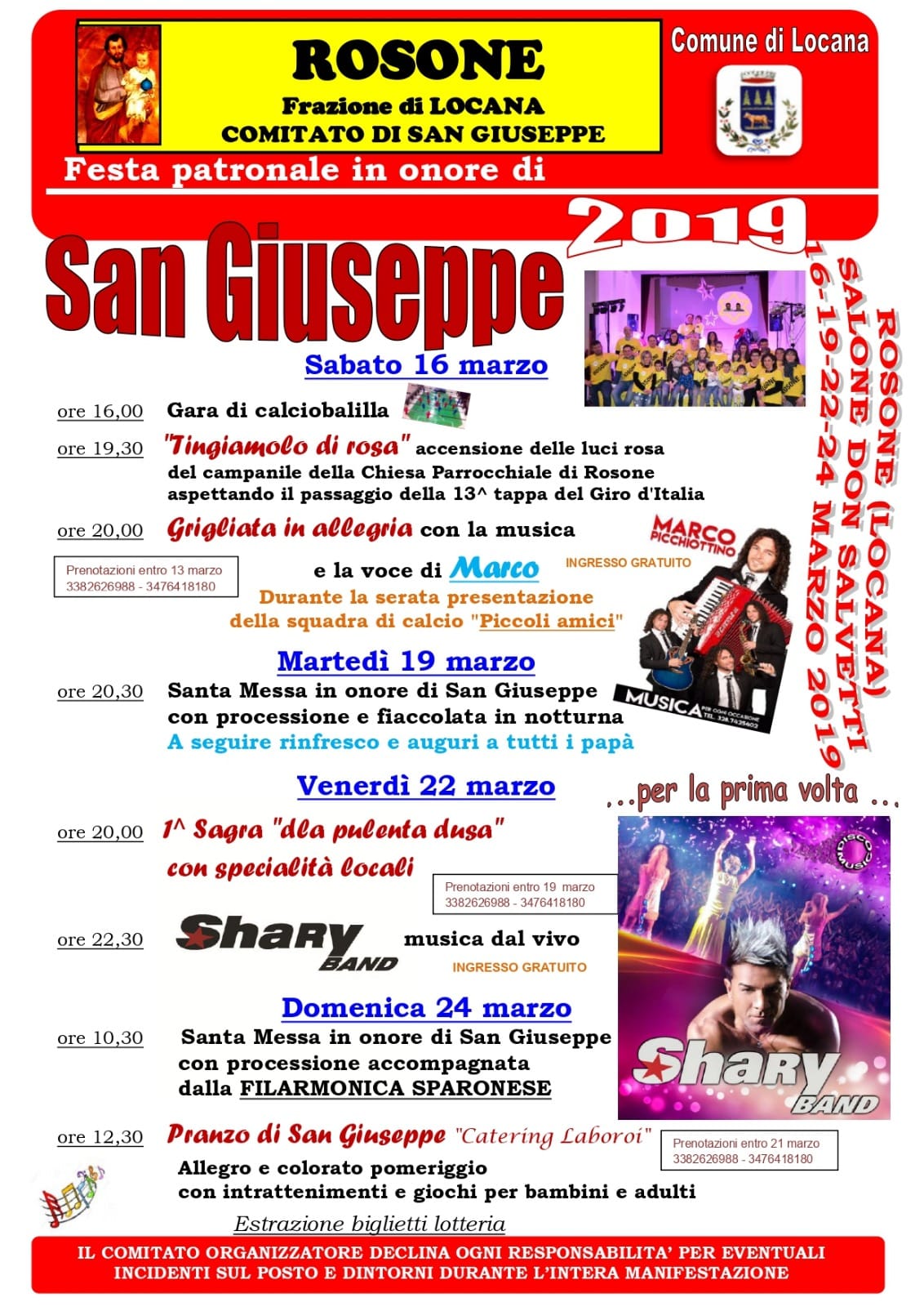 Ore 20.30 - Santa Messa in onore di San Giuseppe con processione e fiaccolata in notturna.