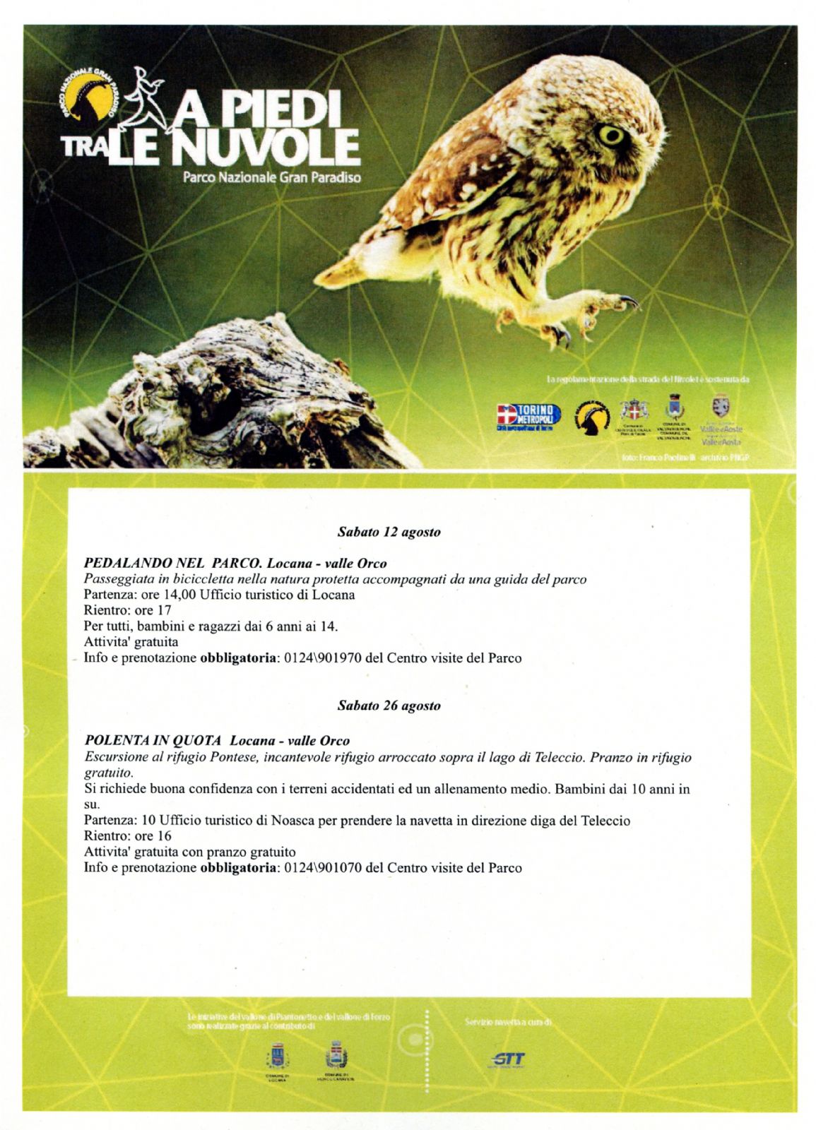 Attività gratuita per tutti, bambini dagli 8 anni in su. Prenotazione obbligatoria entro le ore 18 del giorno precedente al numero 0124.901070