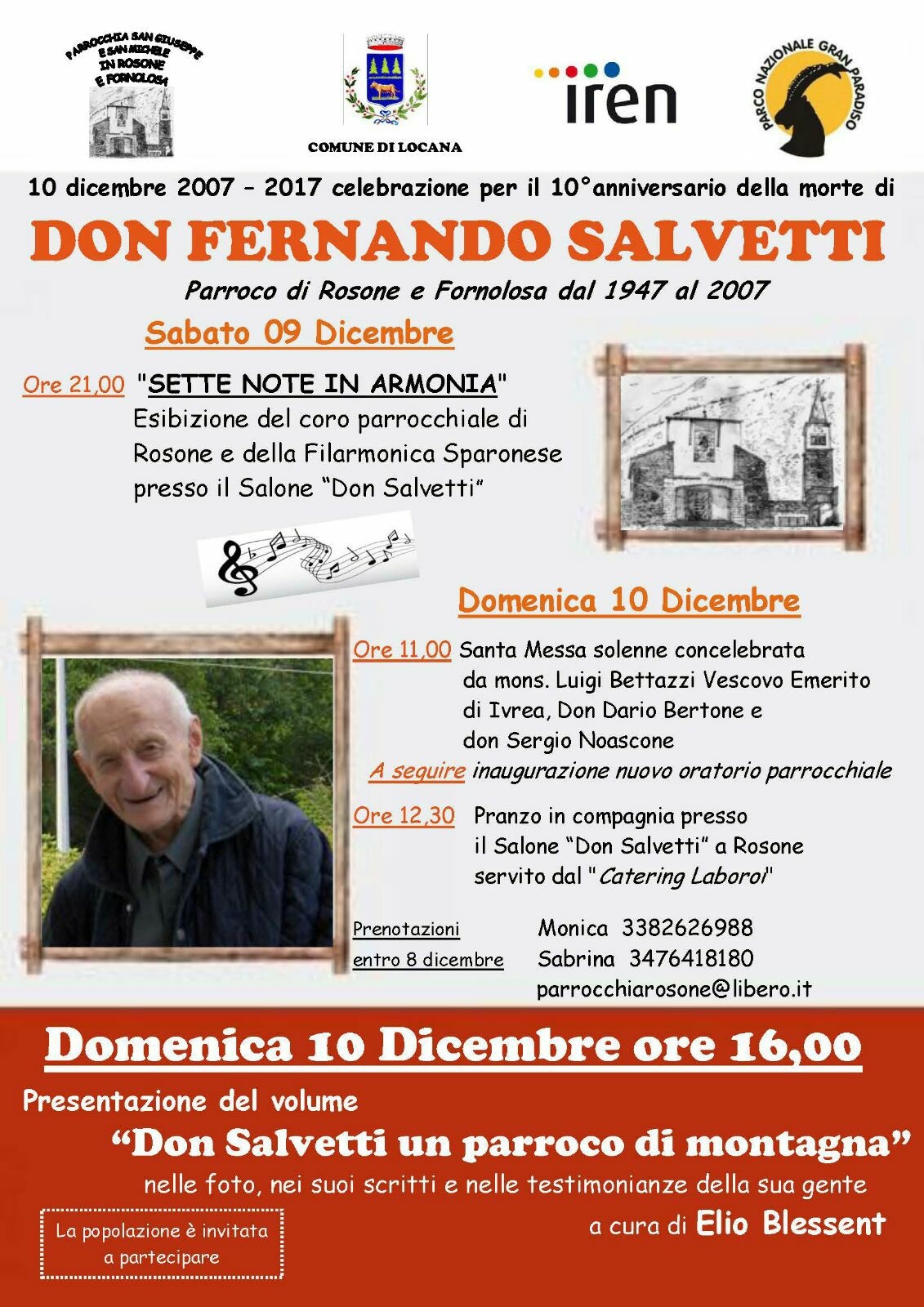 Ore 11.00 - Santa Messa solenne concelebrata da Mons. Bettazzi Vescovo Emerito di Ivrea, Don Dario Bertone e Don Sergio Noascone