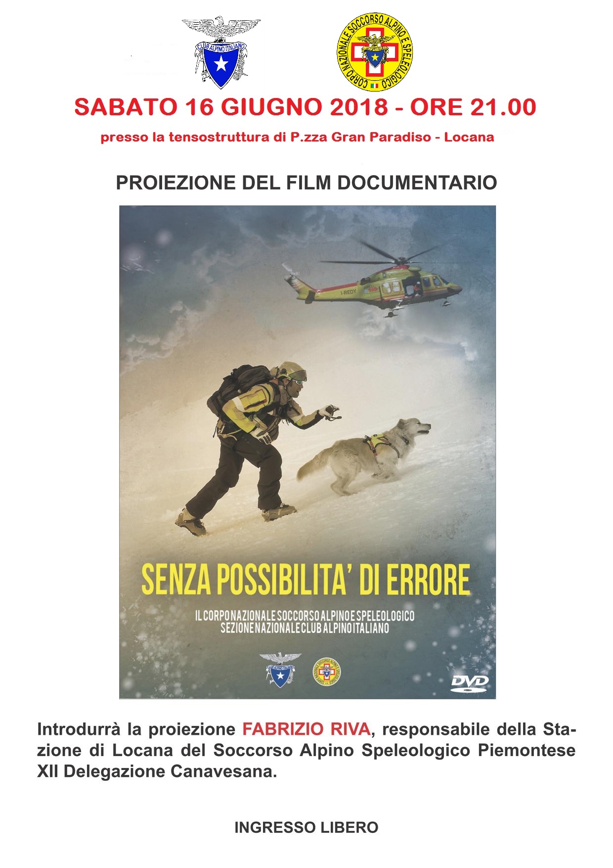 21.00 Proiezione del film "Senza possibilità di errore" a cura del Soccorso Alpino - Locana, tensostruttura