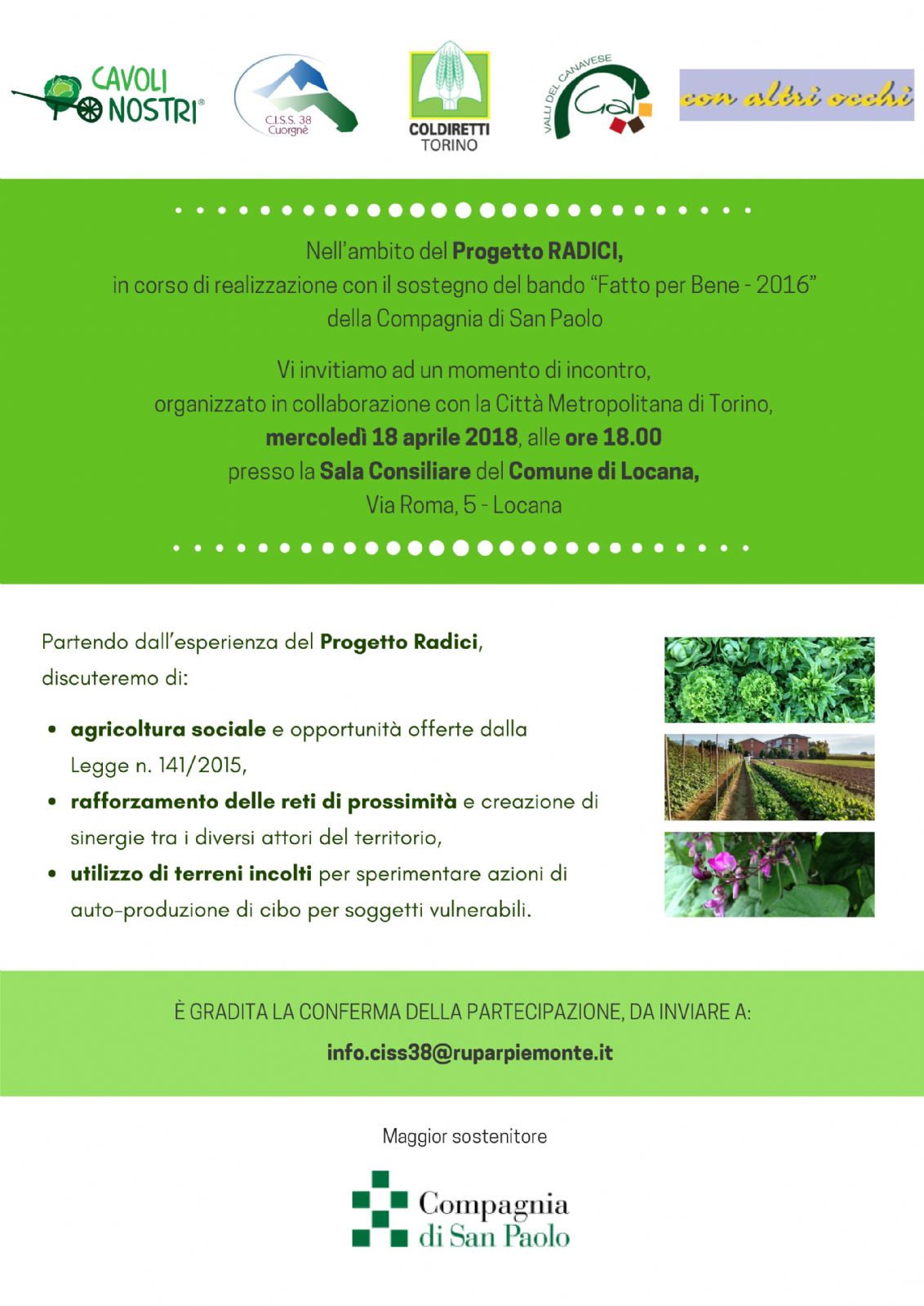 Nell’ambito del Progetto RADICI, in corso di realizzazione con il sostegno del bando “Fatto per Bene - 2016” della Compagnia di San Paolo