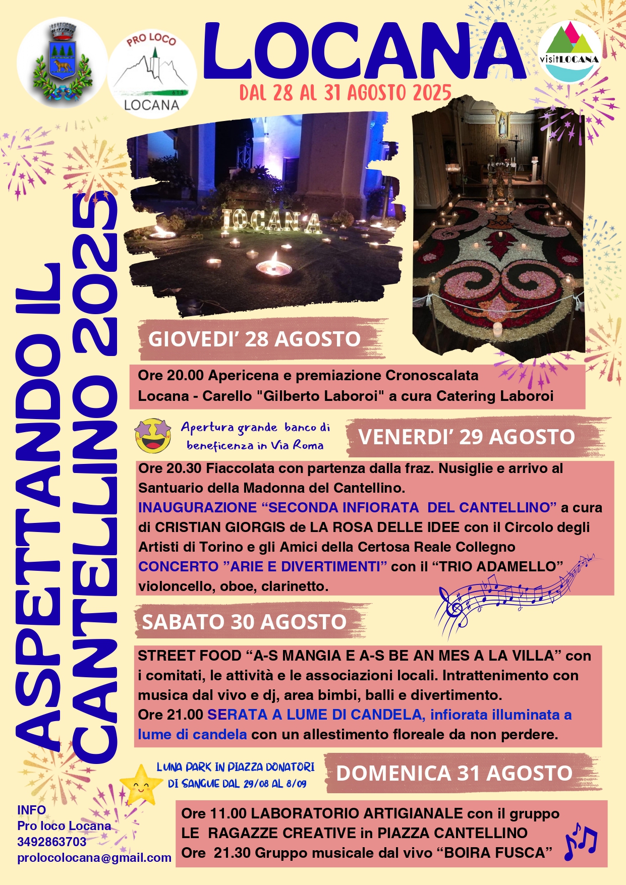 - Fiaccolata con Partenza dalla Fraz. Nusiglie e arrivo al Santuario della Madonna Del Cantellino.