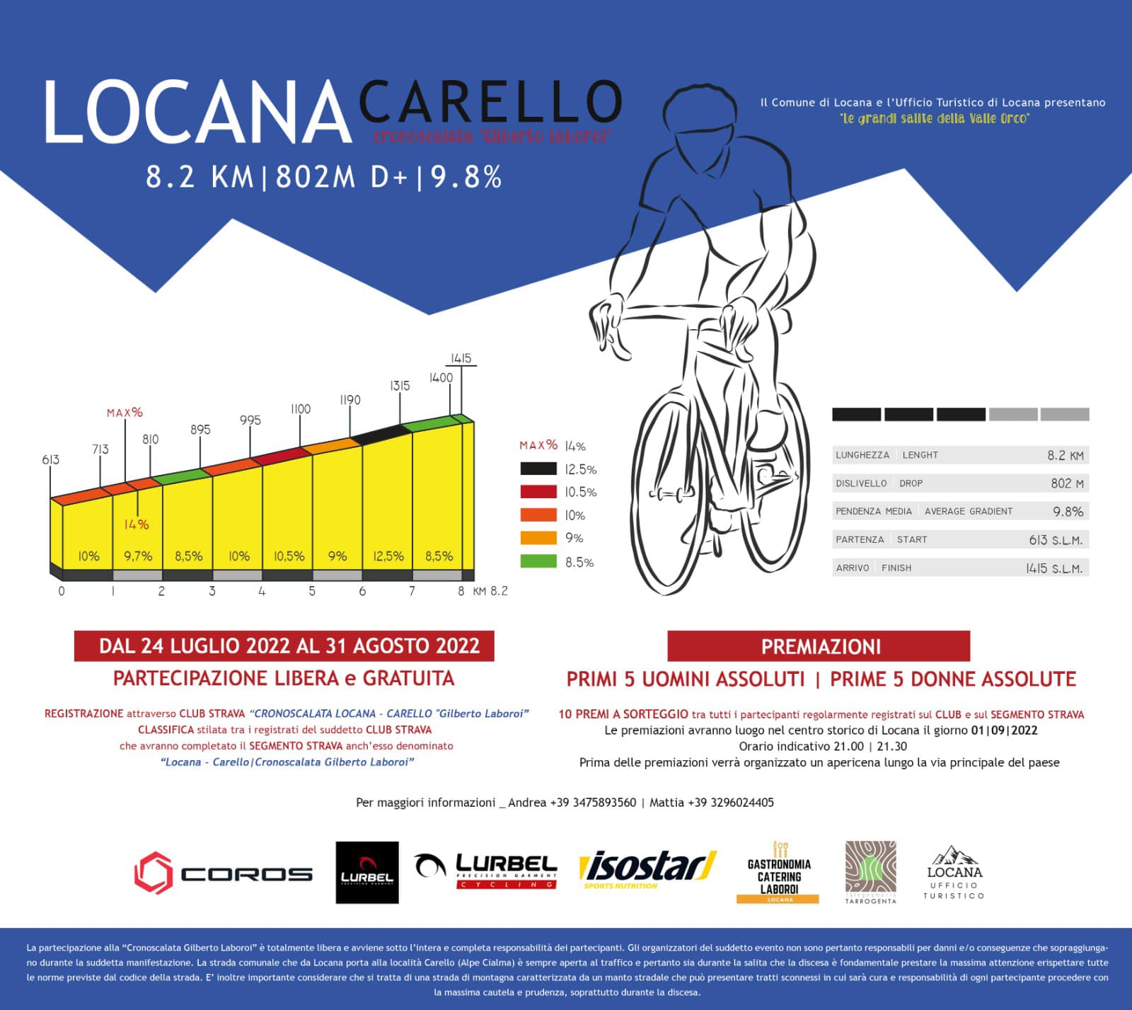 REGISTRAZIONE attraverso CLUB STRAVA "CRONOSCALATA LOCANA - CARELLO "Gilberto Laboroi;"