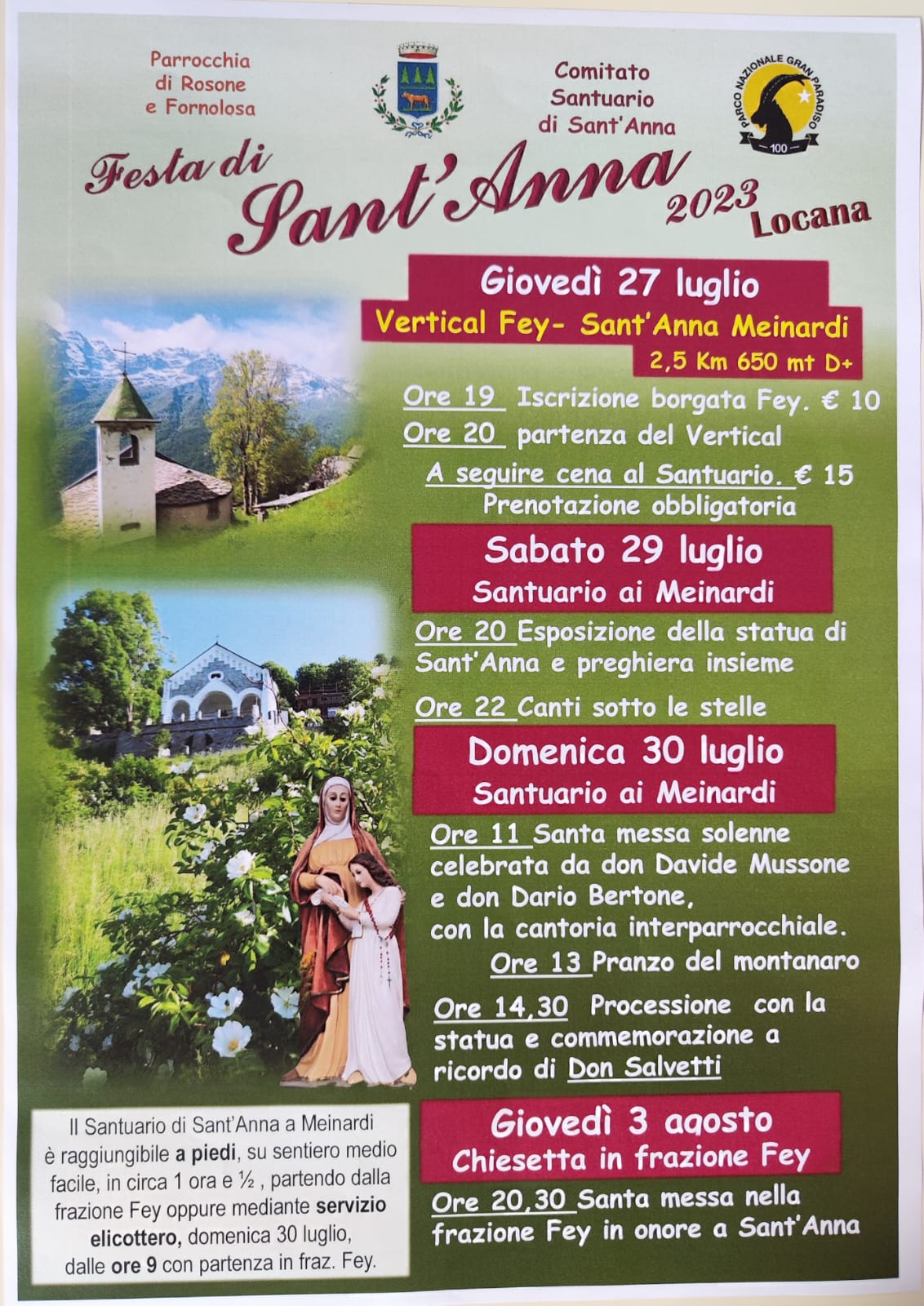 Ore 20.30 - S. Messa nella fraz. Fey in onore a Sant'Anna