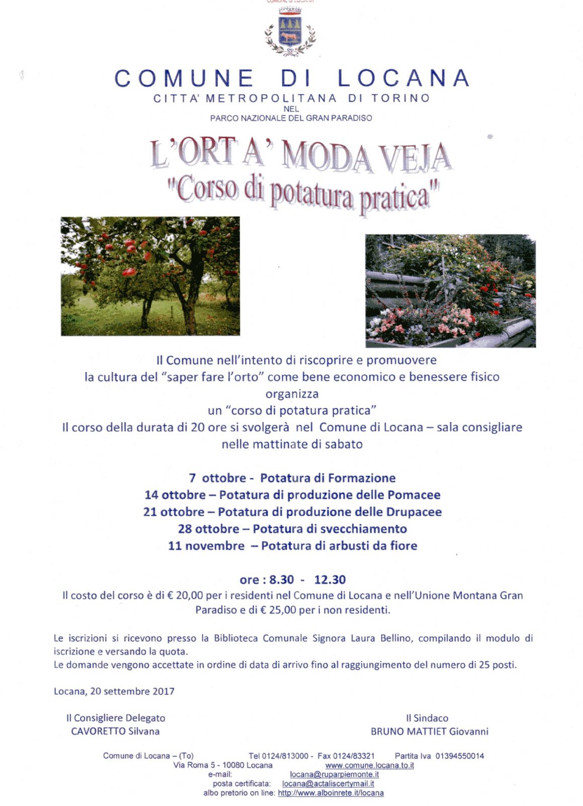 Il costo del corso è di € 20,00 per i residenti nel Comune di Locana e nell'Unione Montana Gran Paradiso