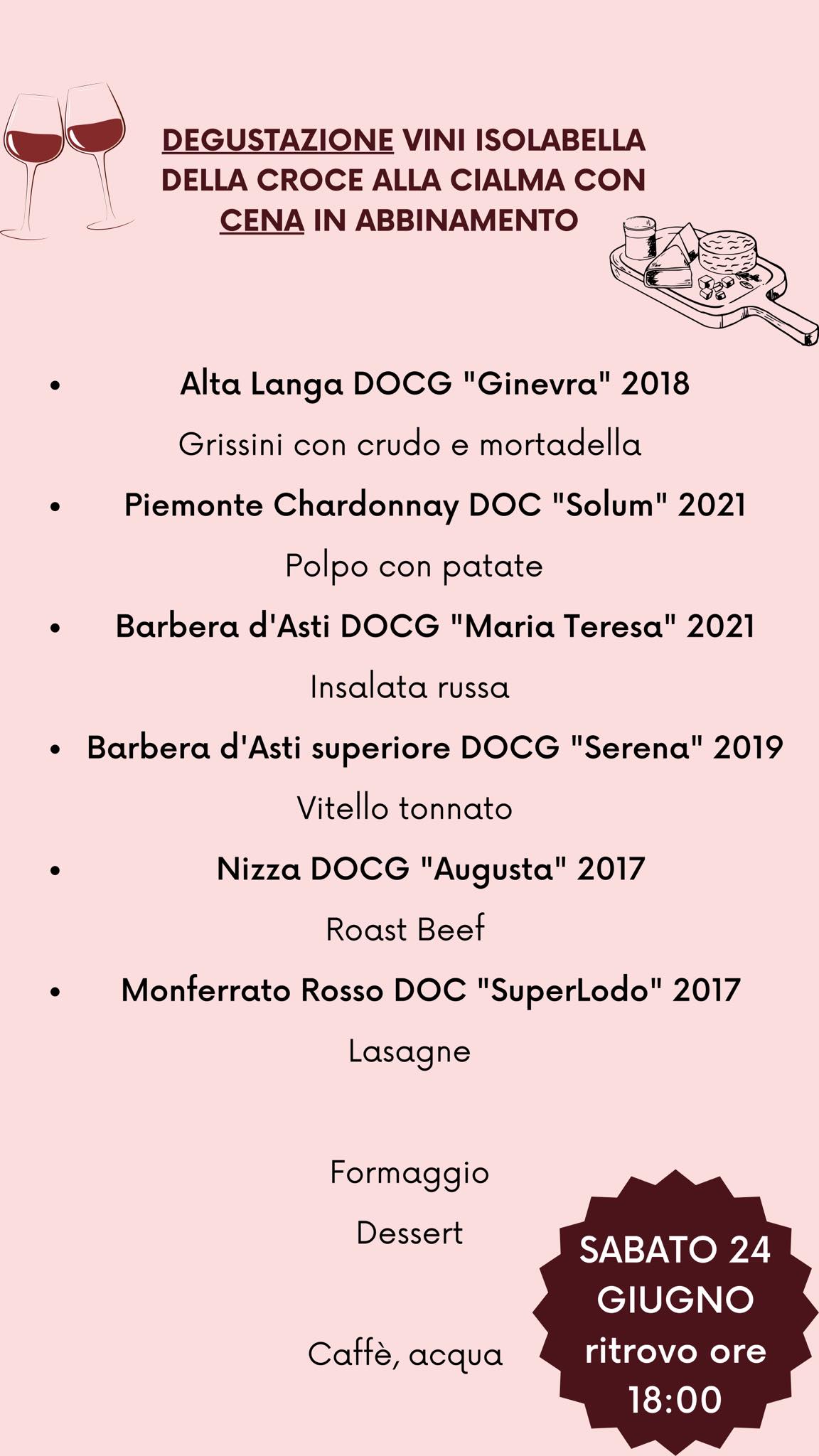 Vieni alla Cialma a scoprire i vini della cantina Isolabella della Croce con cena in abbinamento!