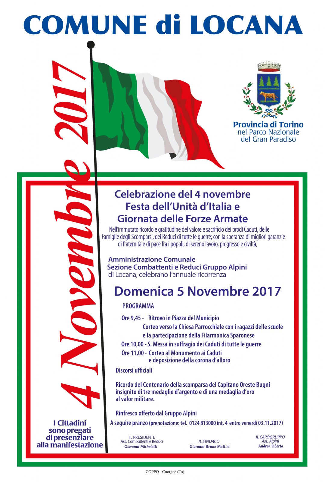 celebreranno l’annuale ricorrenza Domenica 5 Novembre 2017