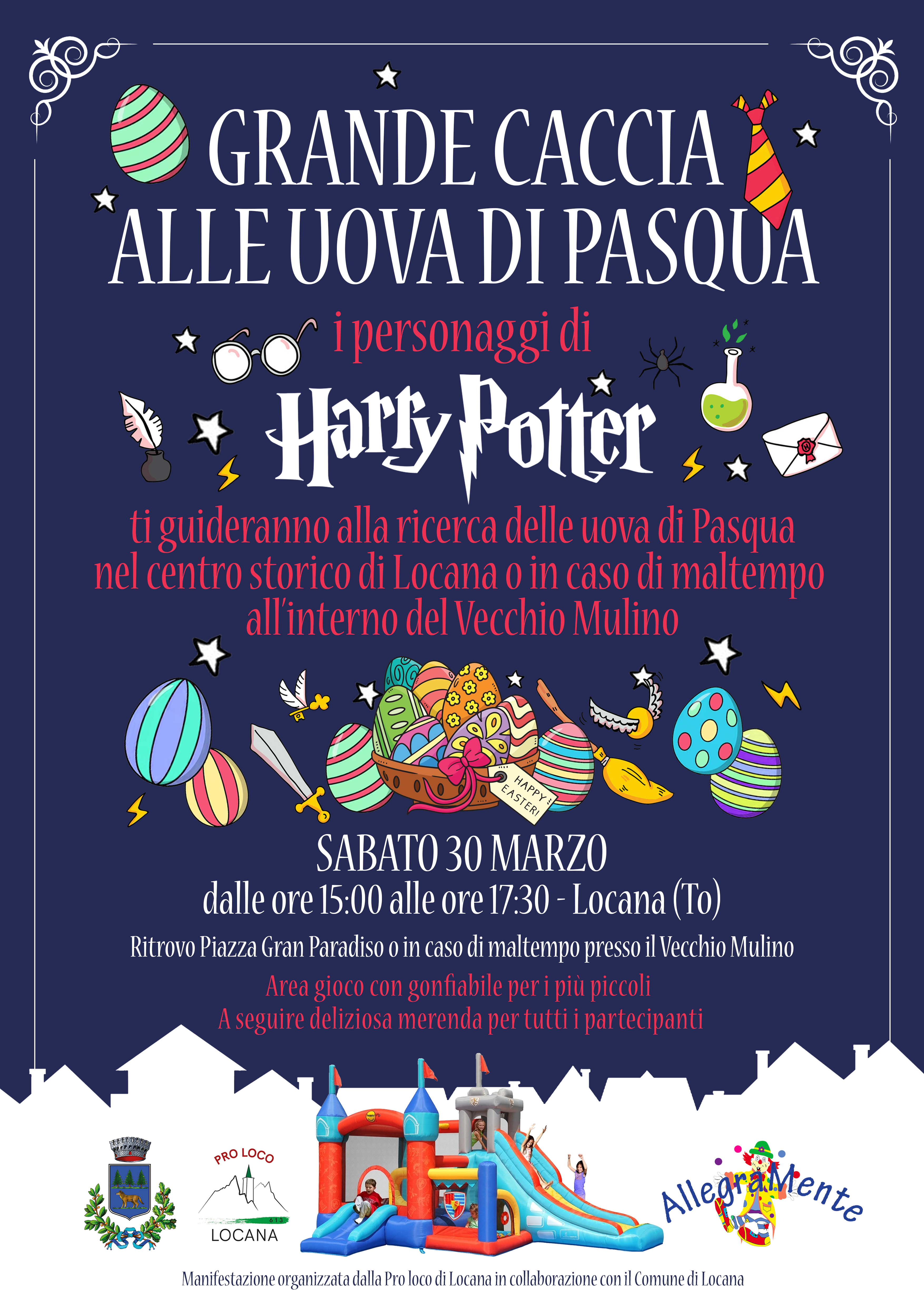 I personaggi di Harry Potter ti guideranno alla ricerca delle uova di Pasqua nel centro storico di Locana o in caso di maltempo all'interno del Vecchio Mulino