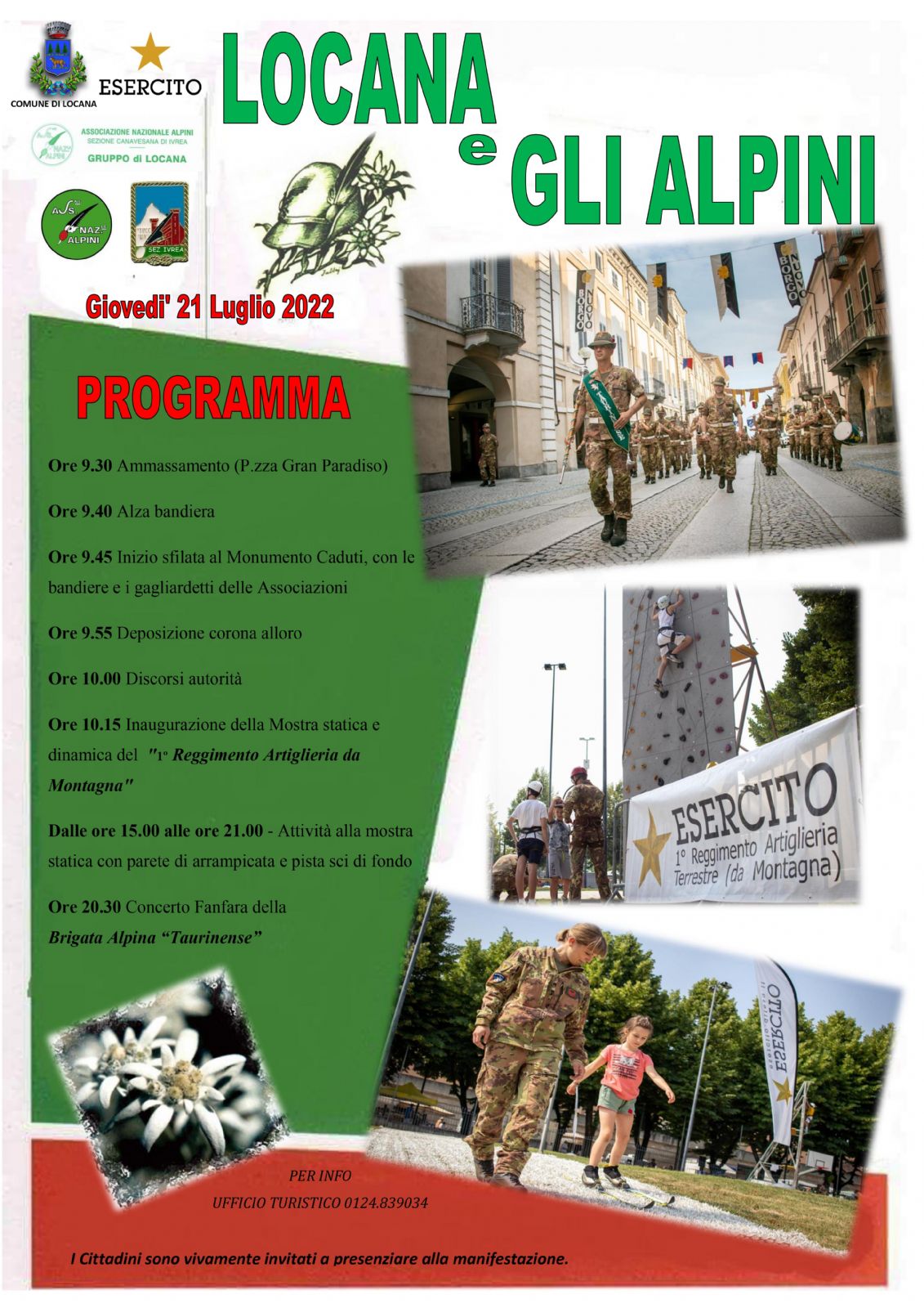 Ore 10.15 Inaugurazione della Mostra statica e dinamica del "1º Reggimento Artiglieria da Montagna"