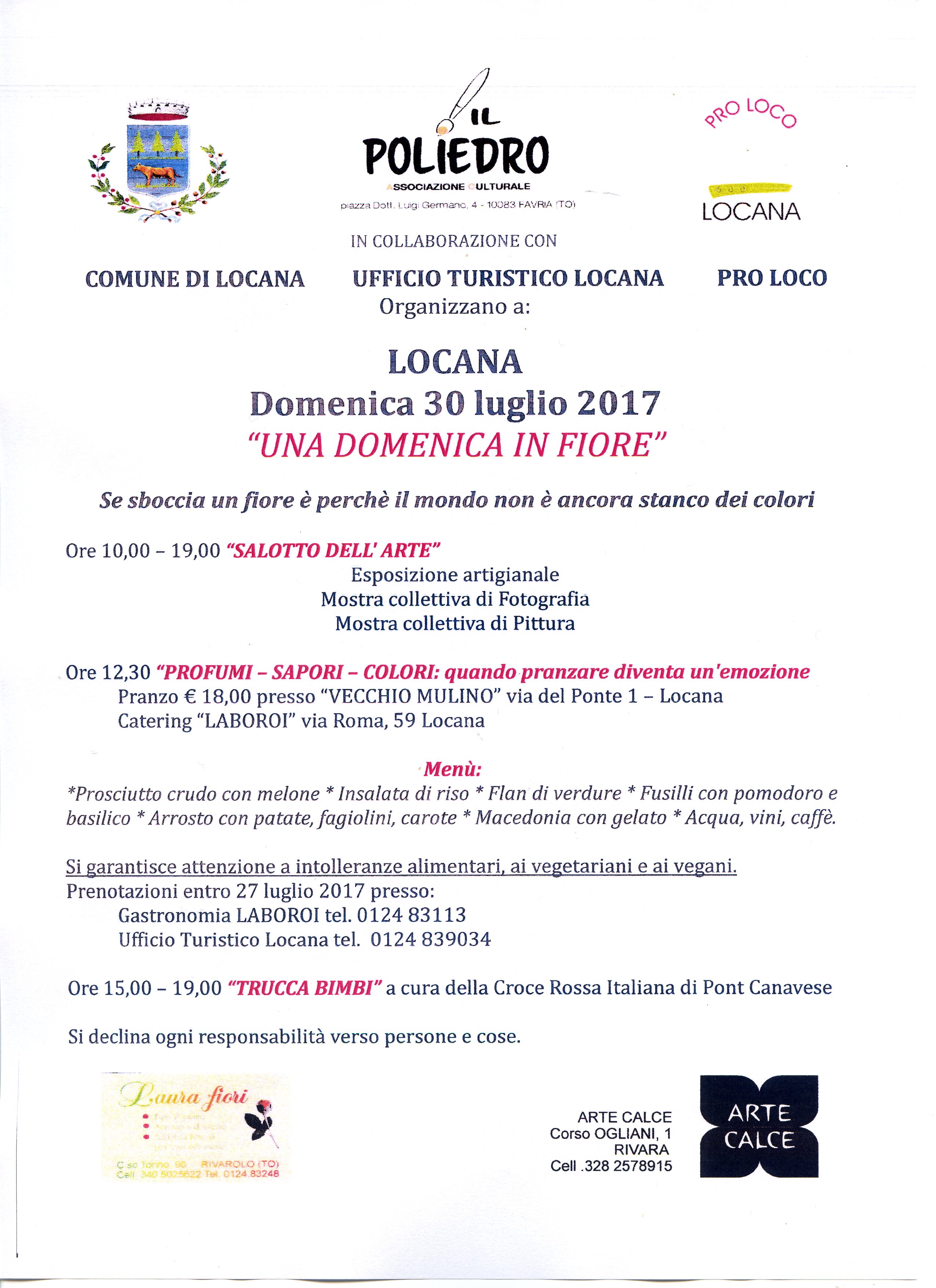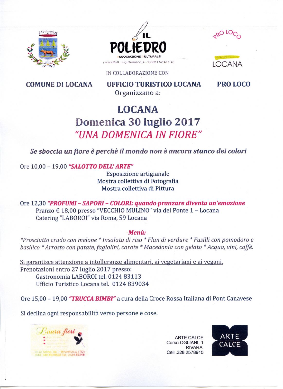 Prenotazioni entro 27 Luglio 2017: Uff. Turistico 0124/839034 - Catering Laboroi 0124/83113
