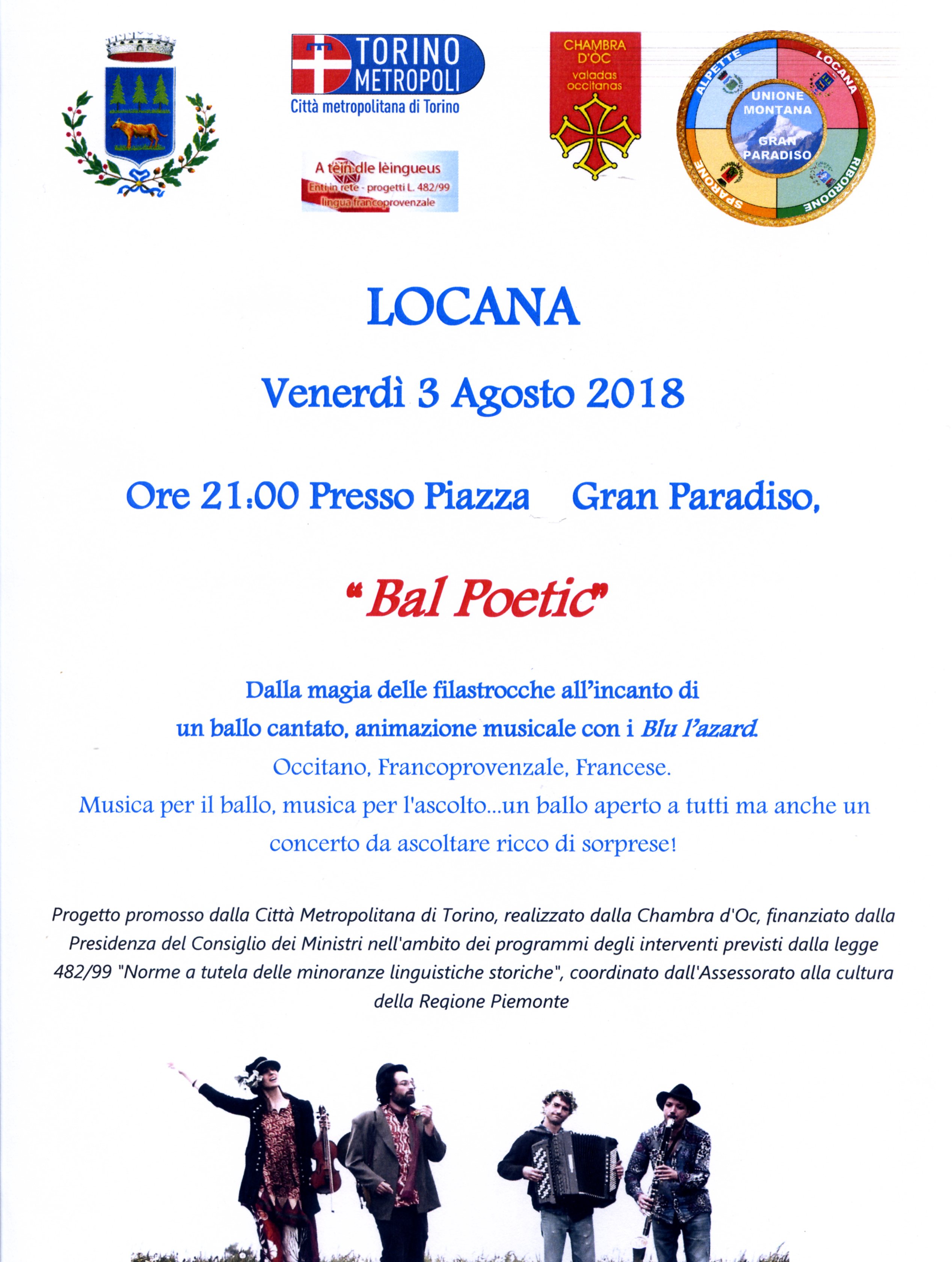 Progetto promosso dalla Città Metropolitana di Torino, realizzato dalla Chambra d'Oc, finanziato dalla Presidenza del Consiglio dei Ministri nell'ambito dei programmi degli interventi previsti dalla legge 482/99 "Norme a tutela delle minoranze linguistiche storiche", coordinato dall'Assessorato alla cultura della Regione Piemonte