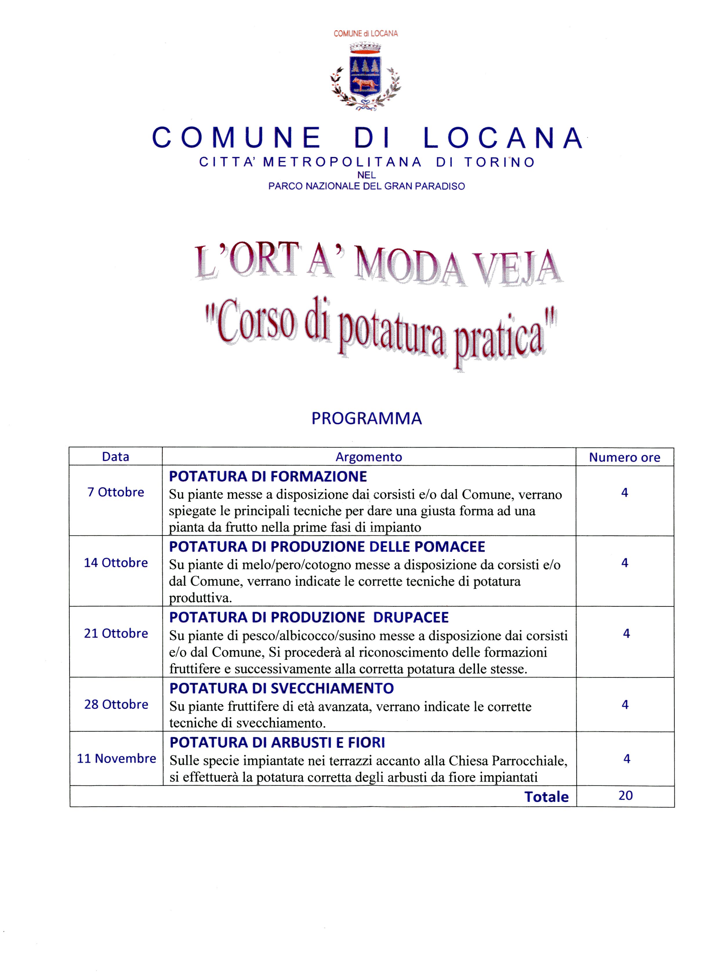 Il corso della durata di 20 ore si svolgerà nel Comune di Locana - sala consigliare nelle mattina: