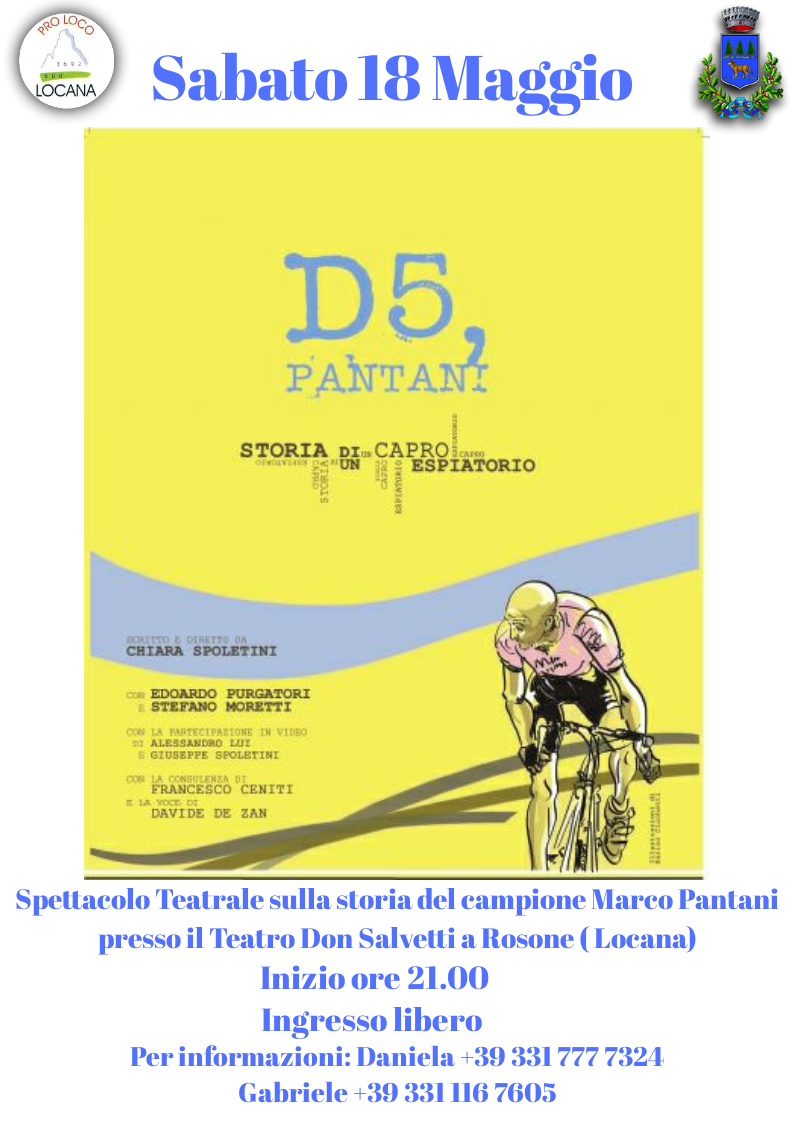 21,00 Spettacolo Teatrale "D5 PANTANI - Storia di un capro espiatorio" scritto e diretto