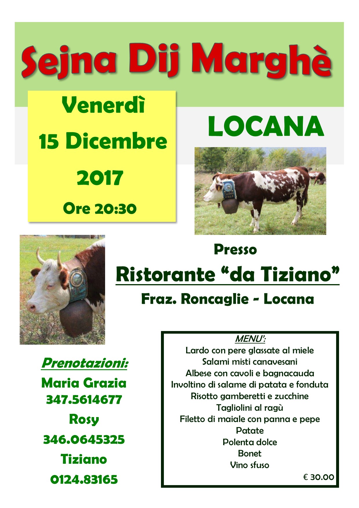 Ore 20.30 - preso Ristorante "da Tiziano", Fraz. Roncaglie - Locana